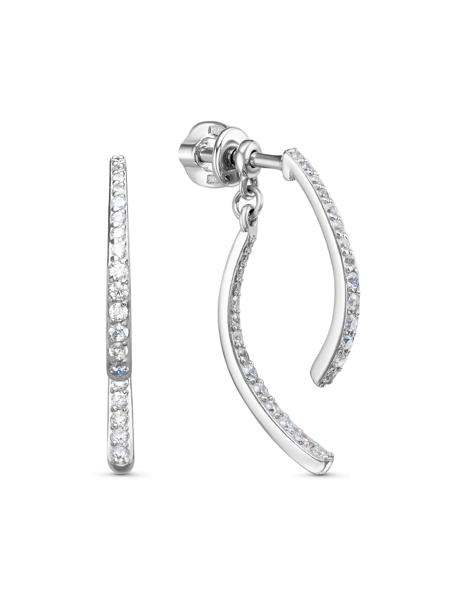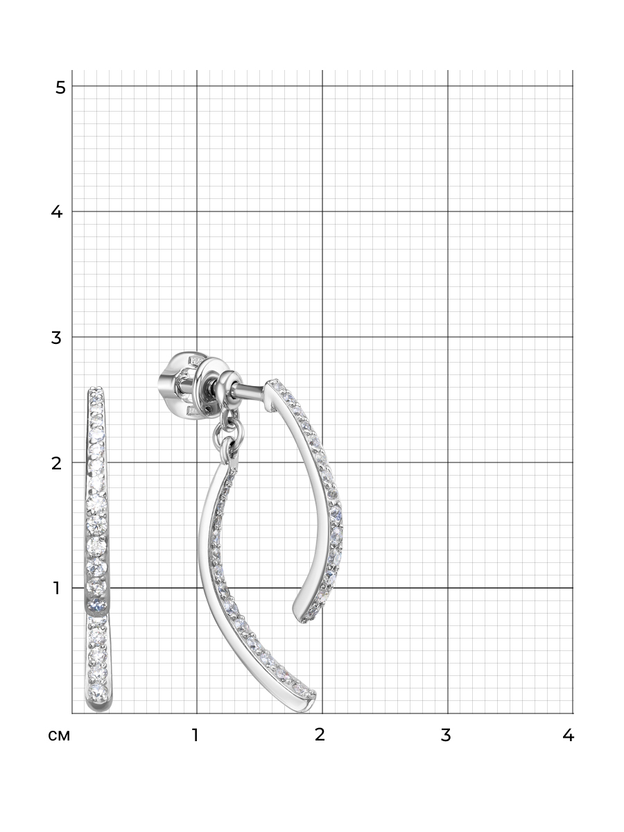 Серьги выполнены из серебра 925 пробы с родиевым покрытием. Характеристики. Вставка 24 недрагоценных бесцветных фианита 1,5мм огранка круг, 16 недрагоценных бесцветных фианитов 1,25мм огранка круг, 16 недрагоценных бесцветных фианитов 1мм огранка круг. Общая высота серьги 26мм. Высота без подвески 19,3мм. Высота подвески вместе с подвесными звеньями 26мм. Подвеска съёмная. Замок винтовой. Рабочая зона штифта 5мм, размер занижения штифта 0,5мм. Берегите изделие от воздействия влаги, любых спиртосодержащих растворов и жидкостей, а также парфюма. Для ухода и чистки желательно использовать специальные салфетки для серебра. Приятным дополнением к ювелирному украшению является фирменная упаковка. Значение веса и габаритов в характеристиках примерные и могут отличаться от фактических.