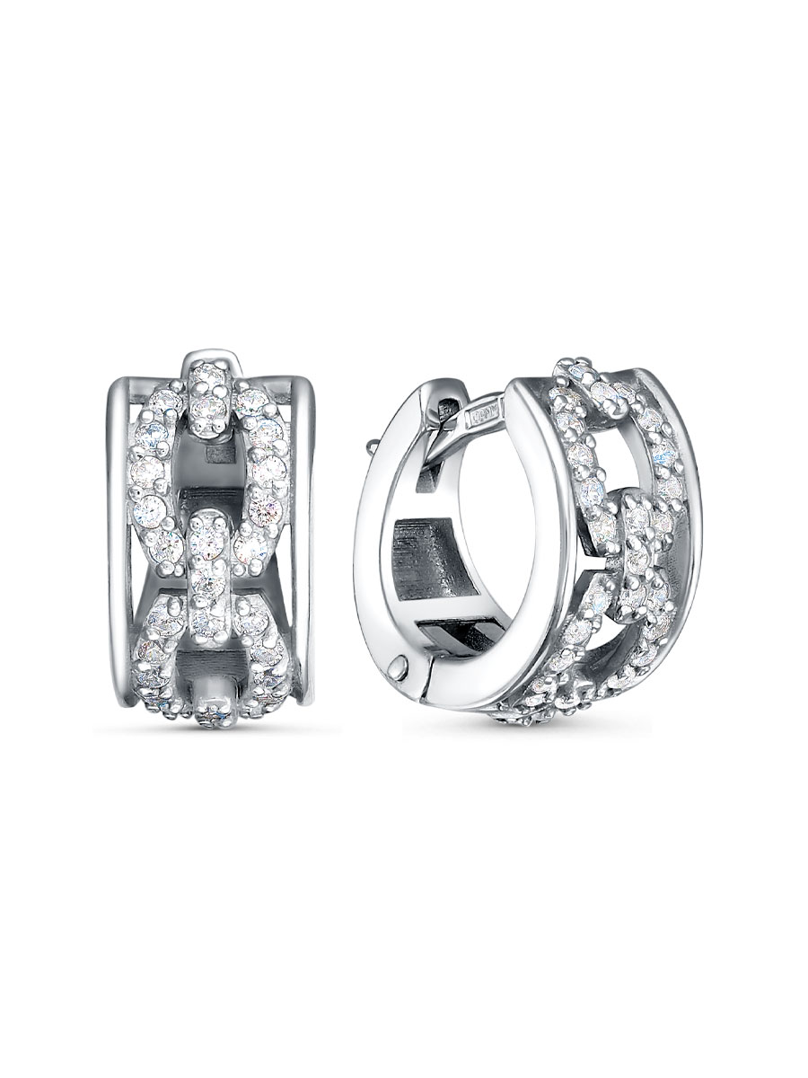 Серьги выполнены из серебра 925 пробы с родиевым покрытием. Характеристики. Вставка 56 недрагоценных бесцветных фианитов 1 мм огранка круг. Высота серьги 12 мм, ширина 6,5 мм. Внутренняя высота 8,2 мм. Рабочая зона штифта 5,8 мм. Размер занижения штифта 1 мм. Берегите изделие от воздействия влаги, любых спиртосодержащих растворов и жидкостей, а также парфюма. Для ухода и чистки желательно использовать специальные салфетки для серебра. Приятным дополнением к ювелирному украшению является фирменная упаковка. Значение веса и габаритов в характеристиках примерные и могут отличаться от фактических.