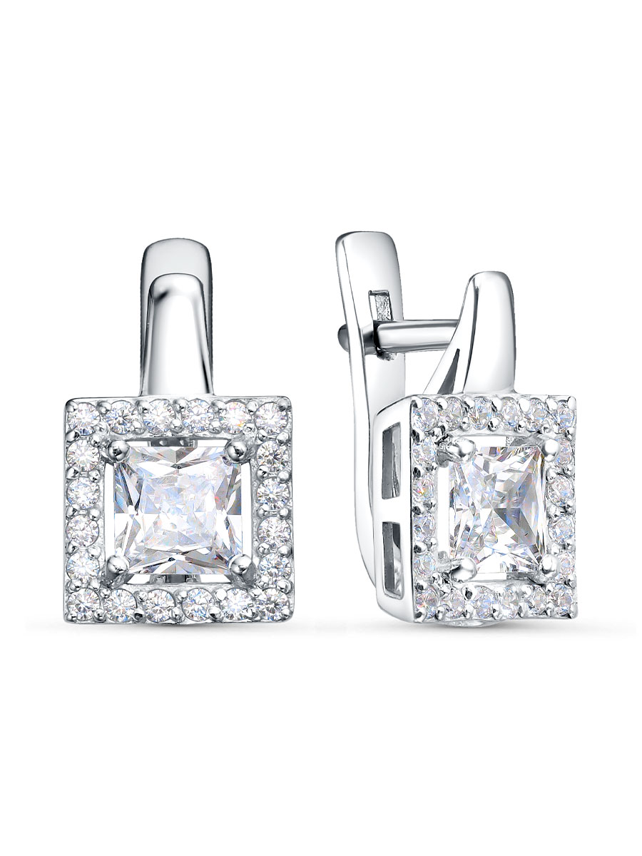 Серьги выполнены из серебра 925 пробы с родиевым покрытием. Характеристики. Вставка 2 недрагоценных бесцветных фианита 5х5 мм огранка квадрат, 40 недрагоценных бесцветных фианитов 1,25 мм огранка круг. Высота серьги 14 мм, ширина 9 мм. Рабочая зона штифта 5,5 мм. Размер занижения штифта 2 мм. Отличным дополнением к серьгам будет кольцо арт. 1-08-436-12р. Берегите изделие от воздействия влаги, любых спиртосодержащих растворов и жидкостей, а также парфюма. Для ухода и чистки желательно использовать специальные салфетки для серебра. Приятным дополнением к ювелирному украшению является фирменная упаковка. Значение веса и габаритов в характеристиках примерные и могут отличаться от фактических.