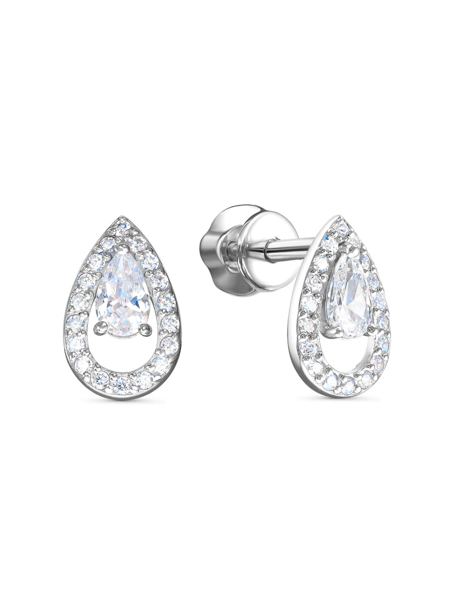 Серьги выполнены из серебра 925 пробы с родиевым покрытием. Характеристики. Вставка 2 недрагоценных бесцветных фианита 5х3 мм огранка груша, 36 недрагоценных бесцветных фианитов 1 мм огранка круг. Высота серьги 10,3 мм, ширина 6,7 мм. Замок винтовой. Рабочая зона штифта 5 мм. Размер занижения штифта 1,5 мм. Берегите изделие от воздействия влаги, любых спиртосодержащих растворов и жидкостей, а также парфюма. Для ухода и чистки желательно использовать специальные салфетки для серебра. Приятным дополнением к ювелирному украшению является фирменная упаковка. Значение веса и габаритов в характеристиках примерные и могут отличаться от фактических.