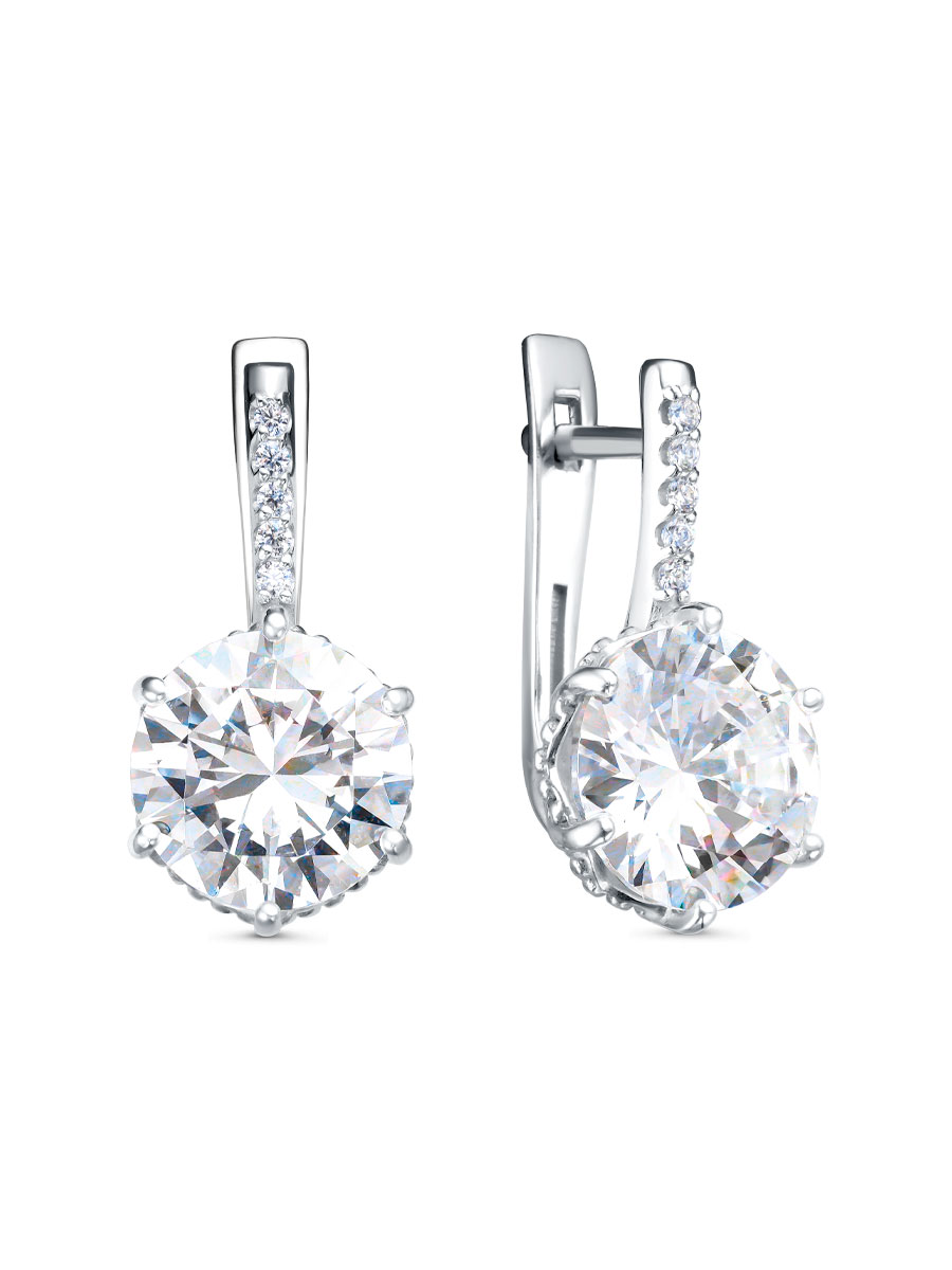 Серьги выполнены из серебра 925 пробы с родиевым покрытием. Характеристики. Вставка 2 недрагоценных бесцветных фианита 10 мм огранка круг, 10 недрагоценных бесцветных фианитов 1,25 мм огранка круг. Высота серьги 20,5 мм, ширина 10 мм, ширина верхней части 1,8 мм. Рабочая зона штифта 6,5 мм. Размер занижения штифта 2 мм. Отличным дополнением к серьгам будет кольцо арт. 1-08-473-12р. Берегите изделие от воздействия влаги, любых спиртосодержащих растворов и жидкостей, а также парфюма. Для ухода и чистки желательно использовать специальные салфетки для серебра. Приятным дополнением к ювелирному украшению является фирменная упаковка. Значение веса и габаритов в характеристиках примерные и могут отличаться от фактических.