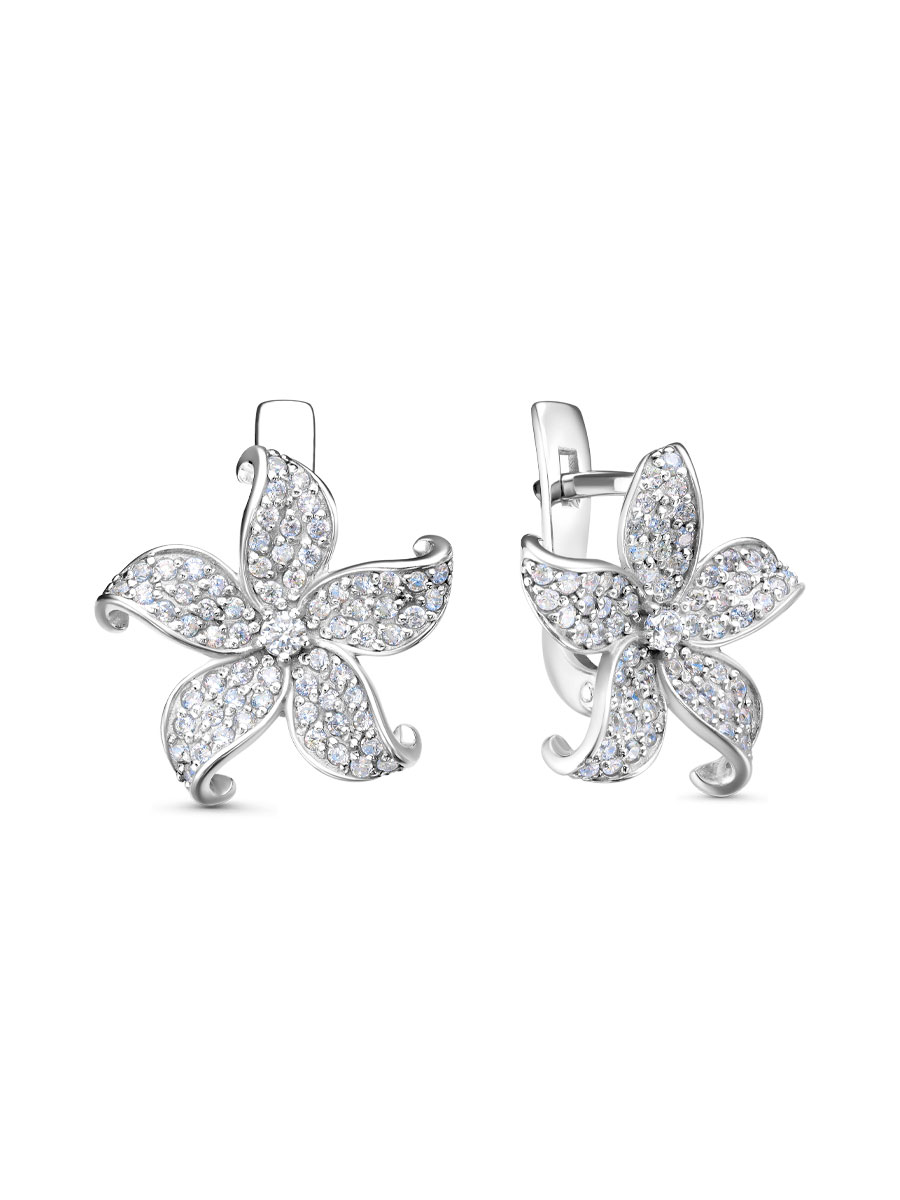 Серьги выполнены из серебра 925 пробы с родиевым покрытием. Характеристики. Вставка 2 недрагоценных бесцветных фианита 2 мм огранка круг, 130 недрагоценных бесцветных фианитов 1 мм огранка круг. Высота серьги 16,3 мм, ширина 16,3 мм. Рабочая зона штифта 6 мм. Размер занижения штифта 1,5 мм. Берегите изделие от воздействия влаги, любых спиртосодержащих растворов и жидкостей, а также парфюма. Для ухода и чистки желательно использовать специальные салфетки для серебра. Приятным дополнением к ювелирному украшению является фирменная упаковка. Значение веса и габаритов в характеристиках примерные и могут отличаться от фактических.