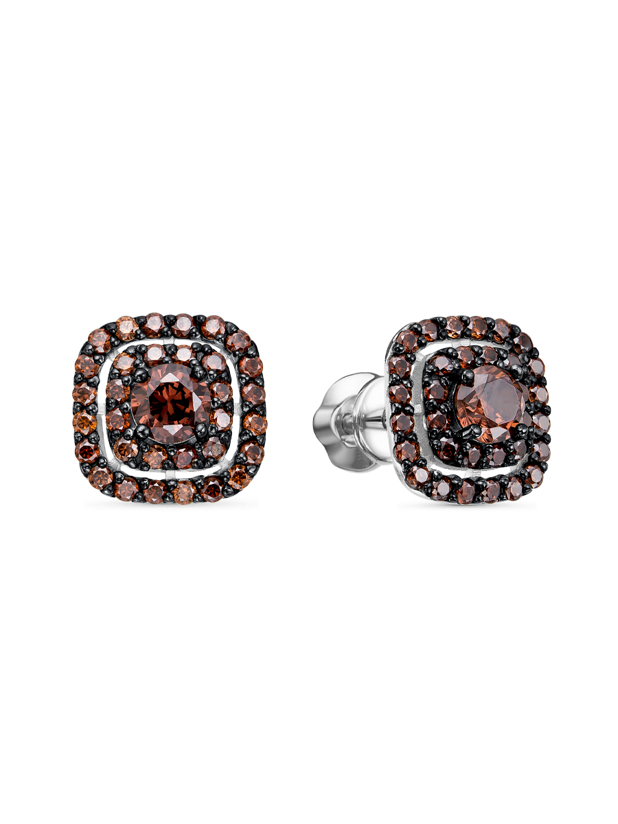 Серьги выполнены из серебра 925 пробы с родиевым покрытием. Характеристики. Вставка 2 недрагоценных фианита 4 мм цвет коричневый огранка круг, 64 недрагоценных фианита 1,25 мм цвет коричневый огранка круг. Высота серьги 9,7 мм, ширина 9,7 мм, глубина 4,3 мм. Рабочая зона штифта 5 мм. Толщина штифта 1,2 мм. Берегите изделие от воздействия влаги, любых спиртосодержащих растворов и жидкостей, а также парфюма. Для ухода и чистки желательно использовать специальные салфетки для серебра. Приятным дополнением к ювелирному украшению является фирменная упаковка. Значение веса и габаритов в характеристиках примерные и могут отличаться от фактических.