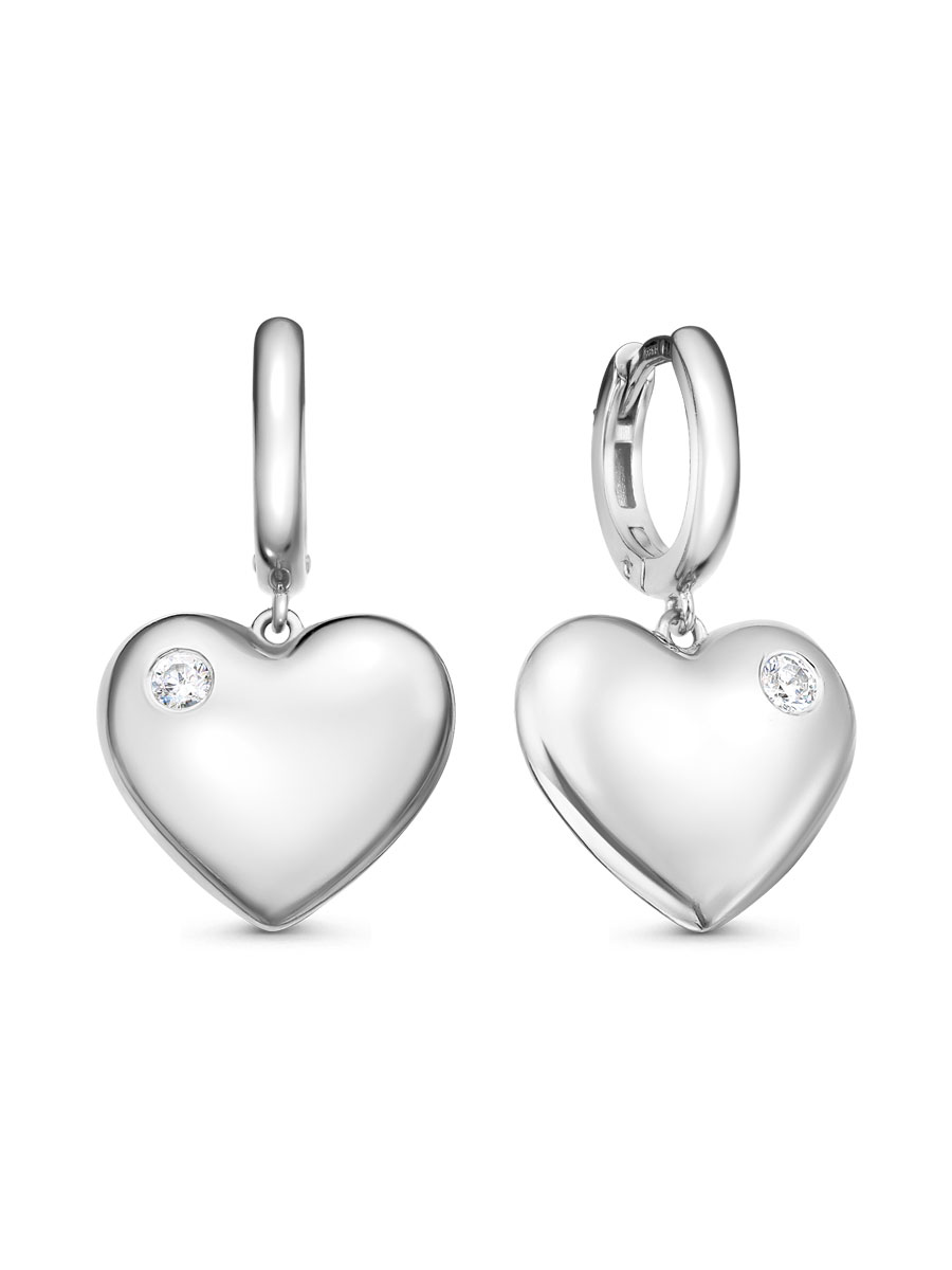 Серьги выполнены из серебра 925 пробы с родиевым покрытием. Характеристики. Вставка 2 недрагоценных бесцветных фианита 2,5 мм огранка круг. Общая высота серьги 25 мм, ширина верхней части 2 мм. Высота сердца 13,2 мм, ширина 14,8 мм, глубина 4,5 мм. Замок английский. Рабочая зона штифта 5,7 мм. Размер занижения штифта 0,5 мм. Отличным дополнением к серьгам будет подвеска арт. 3-08-615-12р. Берегите изделие от воздействия влаги, любых спиртосодержащих растворов и жидкостей, а также парфюма. Для ухода и чистки желательно использовать специальные салфетки для серебра. Приятным дополнением к ювелирному украшению является фирменная упаковка. Значение веса и габаритов в характеристиках примерные и могут отличаться от фактических.