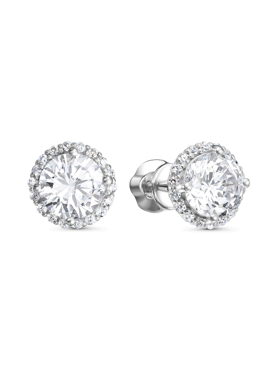 Серьги выполнены из серебра 925 пробы с родиевым покрытием. Характеристики. Вставка 2 недрагоценных бесцветных фианита 6 мм огранка круг, 36 недрагоценных бесцветных фианитов 1 мм огранка круг. Диаметр серьги 8 мм, глубина 4,5 мм. Замок винтовой. Рабочая зона штифта 5 мм, толщина 1,2 мм. Берегите изделие от воздействия влаги, любых спиртосодержащих растворов и жидкостей, а также парфюма. Для ухода и чистки желательно использовать специальные салфетки для серебра. Приятным дополнением к ювелирному украшению является фирменная упаковка. Значение веса и габаритов в характеристиках примерные и могут отличаться от фактических.