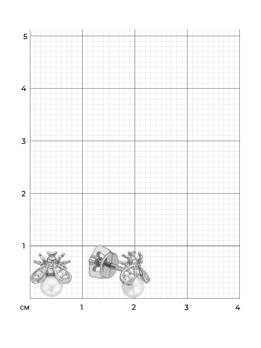 Пусеты Маленькая муха с жемчужиной выполнены из серебра 925 пробы с родиевым покрытием. Характеристики. Вставка 18 недрагоценных фианитов 1мм бесцветных огранка круг, 2 жемчужины 4мм белых круглых. Высота пусета 9мм, ширина 8,4мм, глубина 4,5мм. Рабочая зона штифта 4,5мм. Отличным дополнением к серьгам будут кольцо арт.1-10-023-15з, подвеска арт.3-10-023-15з. Берегите изделие от воздействия влаги, любых спиртосодержащих растворов и жидкостей, а также парфюма. Для ухода и чистки желательно использовать специальные салфетки для серебра. Приятным дополнением к ювелирному украшению является фирменная упаковка. Значение веса в характеристиках является примерным и может отличаться от фактического.