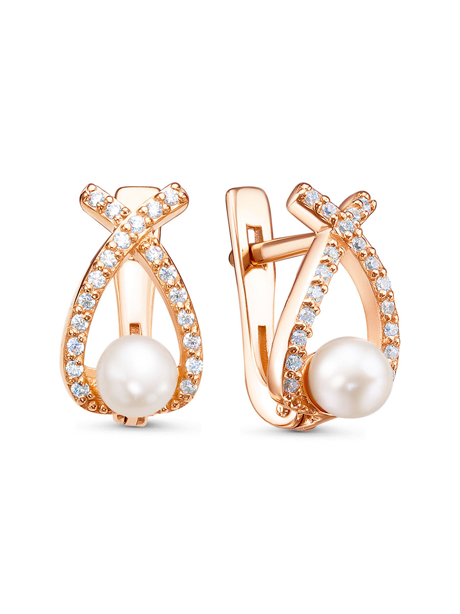 Серьги выполнены из серебра 925 пробы с золотым покрытием. Характеристики. Вставка 2 культивированных жемчужины 4,5х5 мм круг, 40 недрагоценных бесцветных фианитов 1 мм огранка круг. Высота серьги 14 мм, ширина 8,5 мм. Рабочая зона штифта 6,5 мм, размер занижения штифта 2 мм. Берегите изделие от воздействия влаги, любых спиртосодержащих растворов и жидкостей, а также парфюма. Для ухода и чистки желательно использовать специальные салфетки для серебра. Приятным дополнением к ювелирному украшению является фирменная упаковка. Значение веса и габаритов в характеристиках примерные и могут отличаться от фактических.